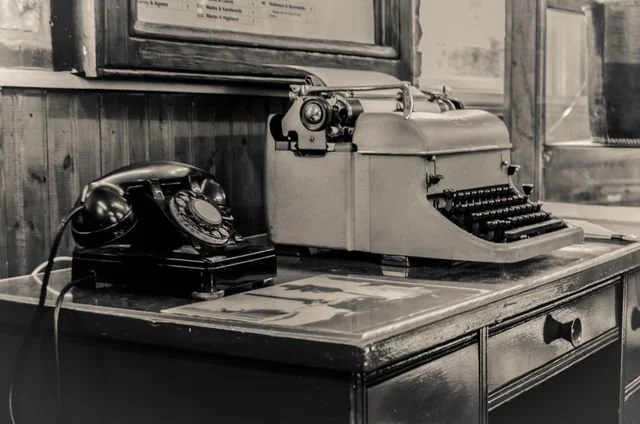 Early office phones, like this rotary dial, were simple but revolutionary for workplace communication.